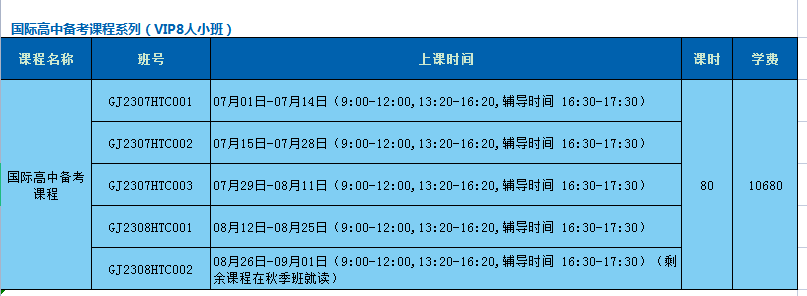 杭州新航道国际高中备考课程暑假培训班系列(VIP8人小班)